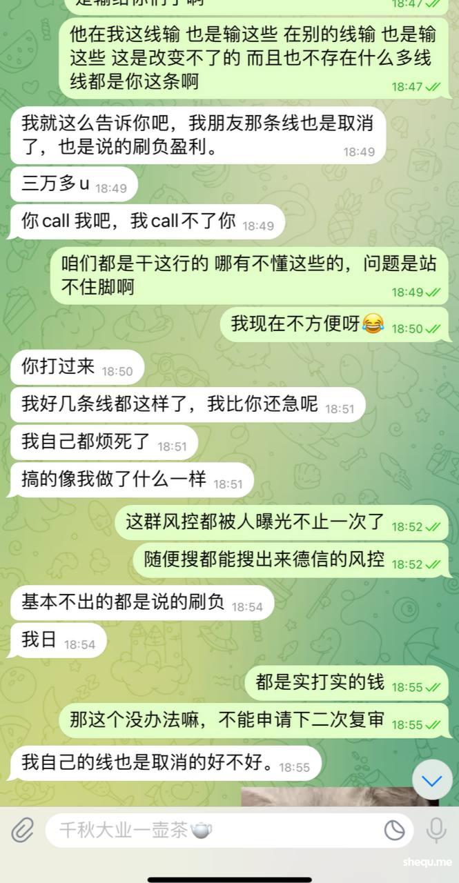 9月注册的代理线 朋友那边的大哥玩的 本身大哥在那边线就输了小百万了,不太想玩了 就换到我这边 也是输钱的 朋友那边线就没玩了, 只是10月红了2000U 朋友那边红了2000U 一共不到4000U 但是代理线负盈利9月 1.6万U 直接给我取消了