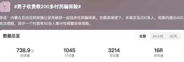 点进热搜话题看了下,该消息是来自央视盖章的,据央视新闻报道,该案例是内蒙古自治区阿荣旗公安局破获的一起挂床住院骗保案。‍