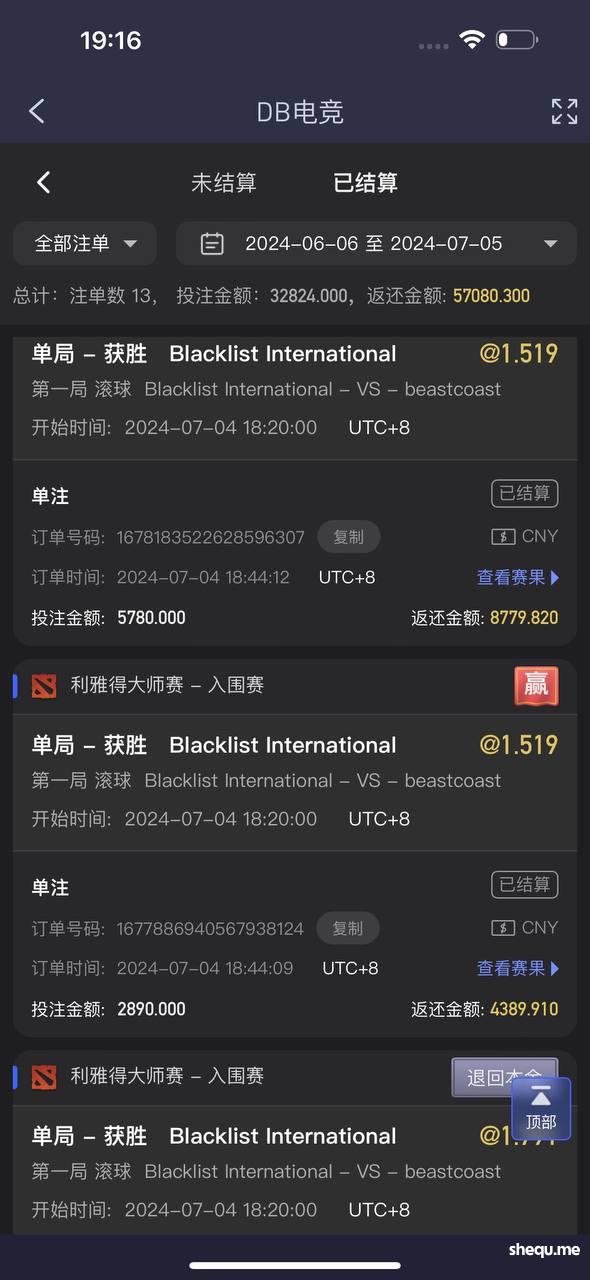 等了两天,我又忍不住赢了一万,然后账号直接黑,后面联系客服出了本金得一万,黑了我4万的盈利